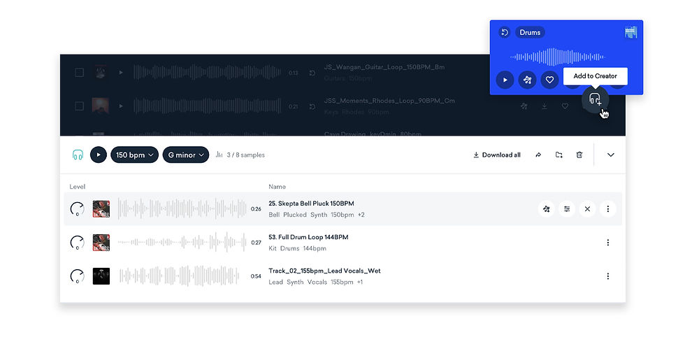 With Creator the original key or time signature of your samples doesn’t matter—the tool will automatically pitch shift and time stretch each loop in your desired key and tempo.