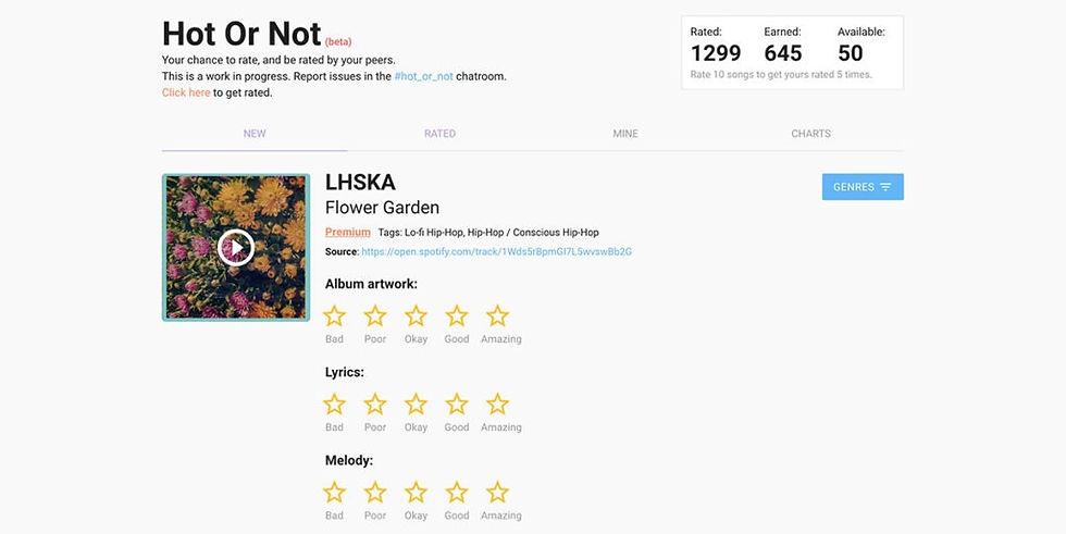 There’s also the Hot or Not section. It’s a feature for artists to rate other artists. I coded it just for fun over christmas and it’s totally taken off.